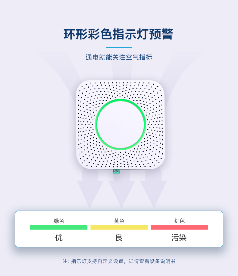 二氧化碳、温度、湿度、颗粒物、TVOC、甲醛、氨气、硫化氢、氧气、二氧化硫等,以实际所购版本为准。 |
